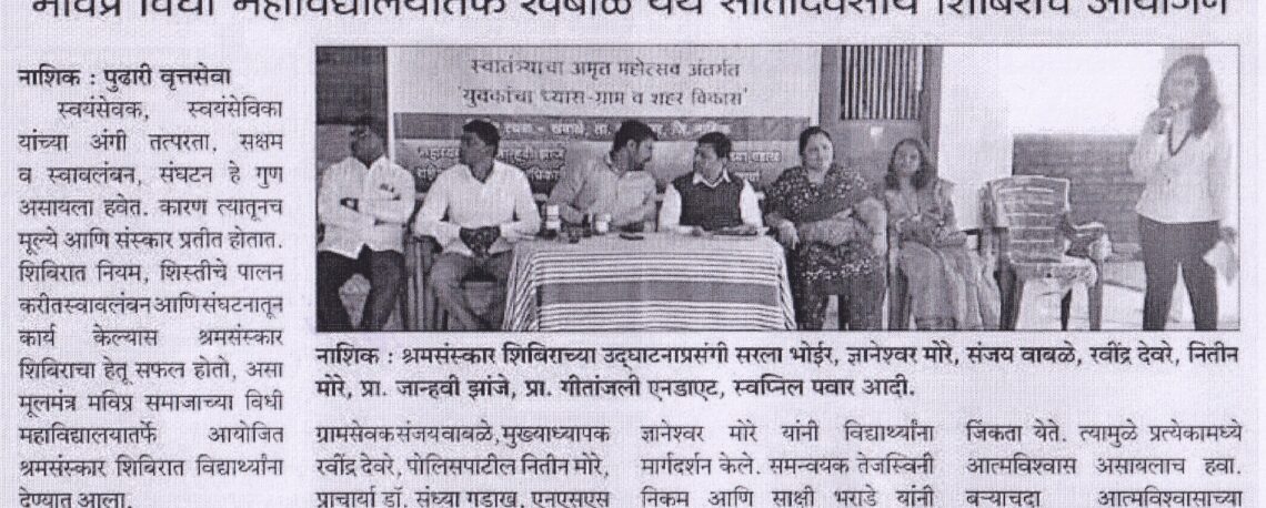 मविप्र महाविद्यालय तर्फे खंबाळे येथे सात दिवसीय शिबिराचे आयोजन.