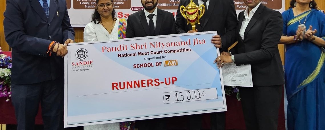 Our team from MVP Law College – Harshad Sunil Pagare, Manas Gorakhnath Shinde, and SonamKumari Ramji Chaourasiya – secured the Runner-up Prize at Sandip Foundation’s 3rd Pandit Shri Nityanand Jha National Moot Court Competition 2025!